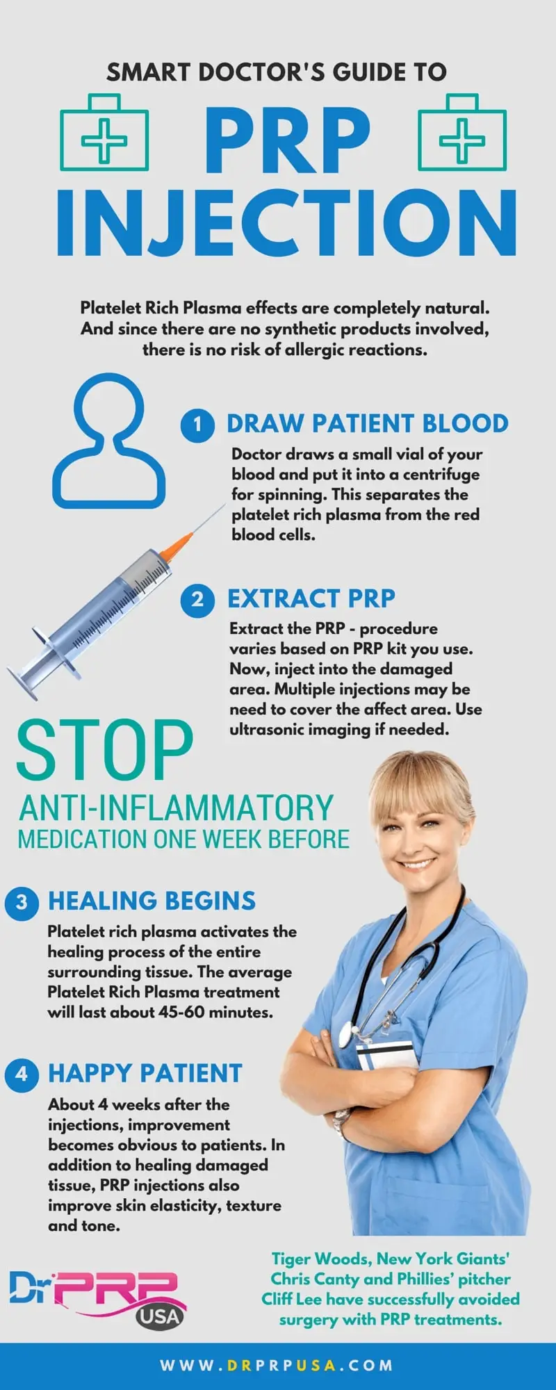 Dr. Grant Cordone of New York University’s Langone Medical Center says, many potential surgeries are avoided by PRP injections. And lack of concrete evidence shouldn’t stop you from trying PRP before putting the patient under the knife.